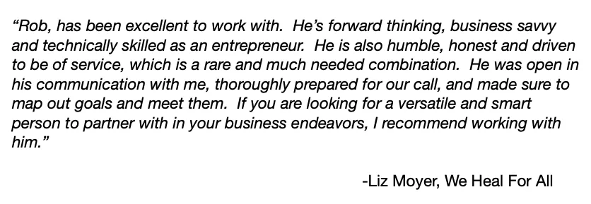 (1) 1 Hour Alignment & Strategy Call with Rob. During this call, Rob will help map out your overall sales and marketing strategy and create/optimize your offer.